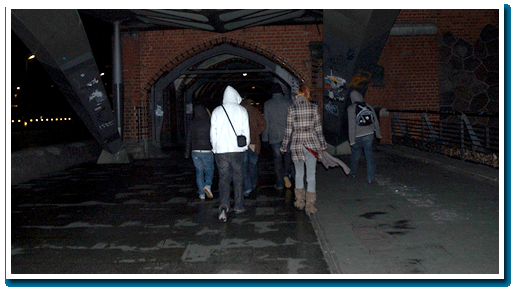 WALKING ACROSS THE BRIDGE TOWARDS WARSCHAUER STR